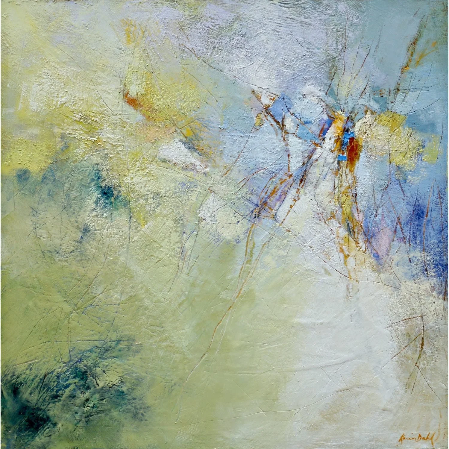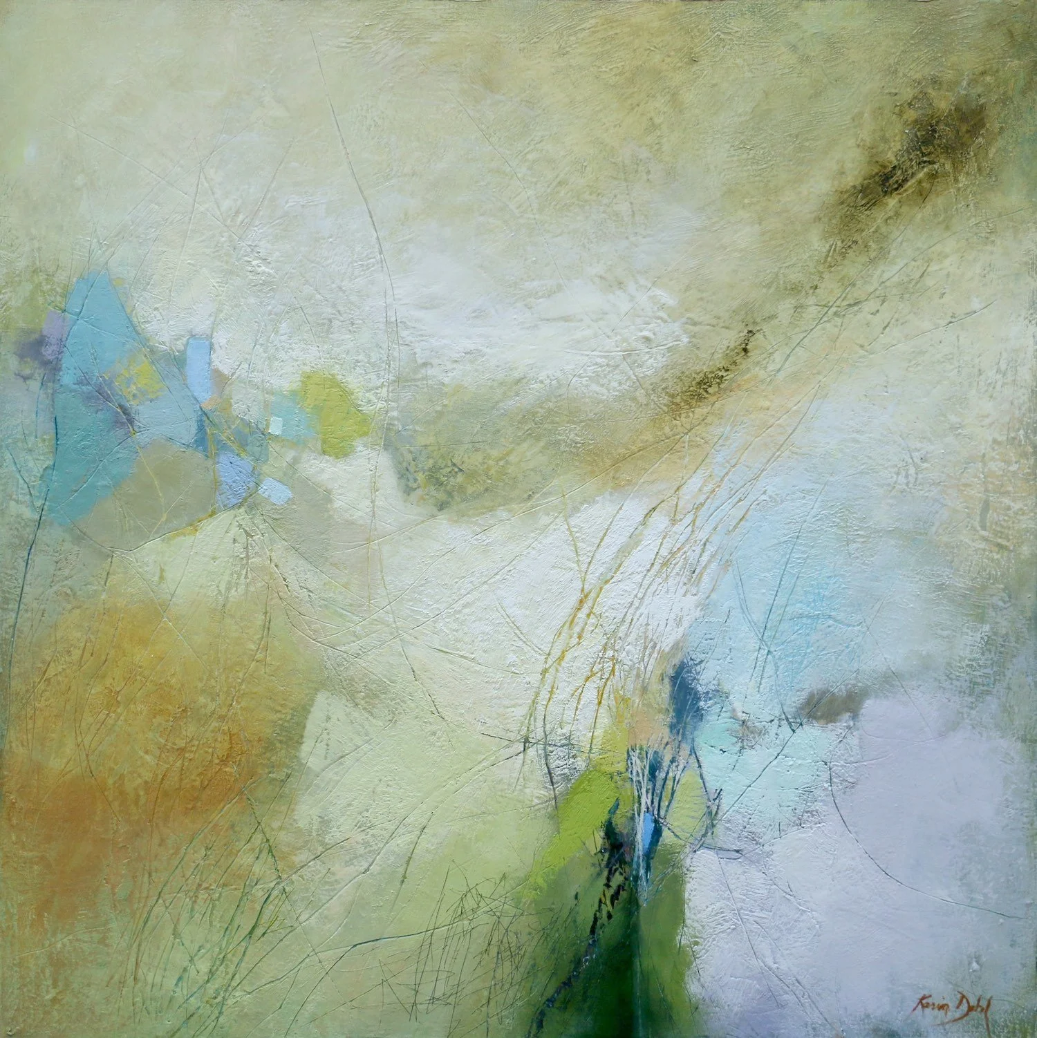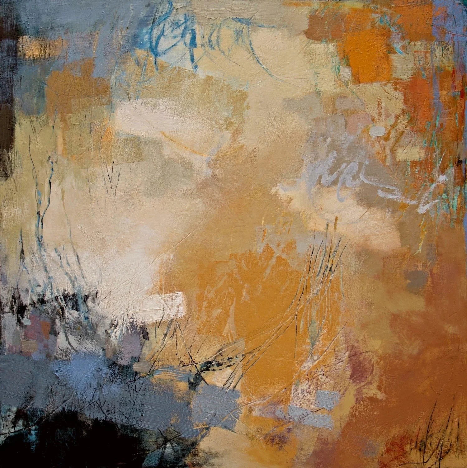 Scraped sgraffito lines reveal base colors, mark-making connects shapes